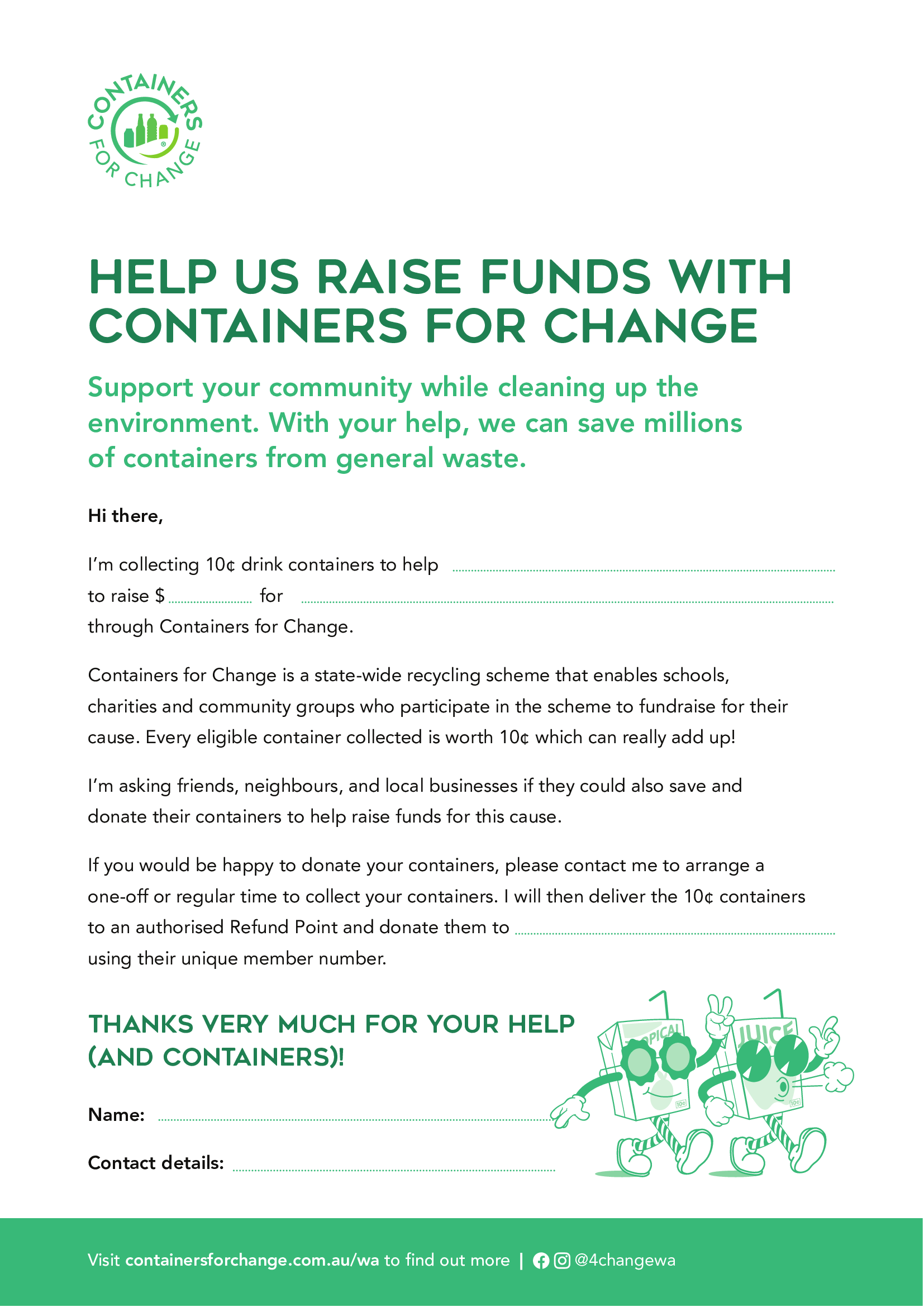 Handy hint: Let everyone know how your fundraising is going with updates in your newsletters or by tagging @4changeWA in your social media posts.