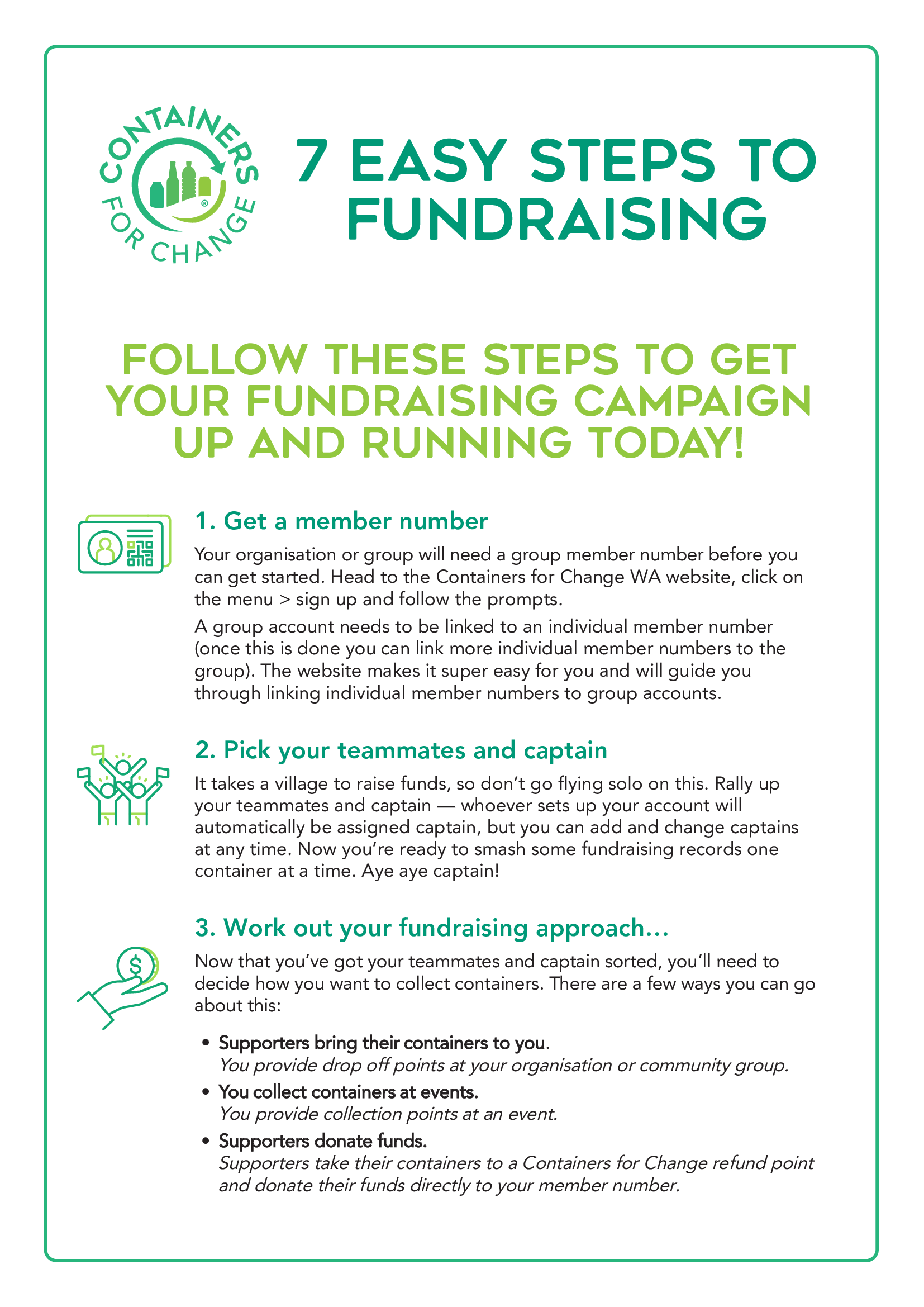 Promote your Containers for Change fundraising to your network and supporters! They can help you collect 10¢ containers or even use your group member number to donate their refund straight to you!